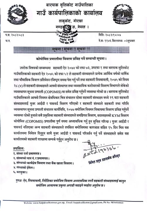 कोपोमिस प्रणालीमा पूर्ण विवरण प्रविष्ट गर्ने सम्बन्धी सूचना ।।
