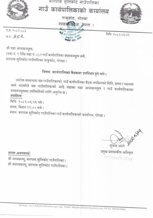 Home » कार्यपालिका बैठकमा उपस्थित हुने बारे ।।