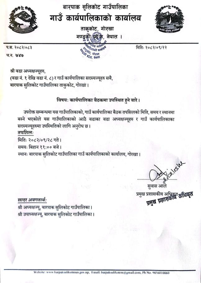 Home » कार्यपालिका बैठकमा उपस्थित हुने बारे ।