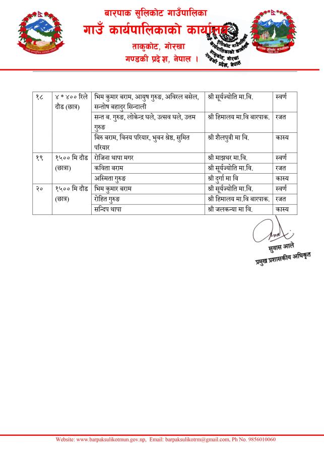 Home » छैठौँ बारपाक बारपाक सुलिकोट रनिङ शिल्ड प्रतियोगिता अन्तर्गत पहिलो र दोस्रो दिन सम्मको नतिजा प्रकाशन गरिएको सूचना।