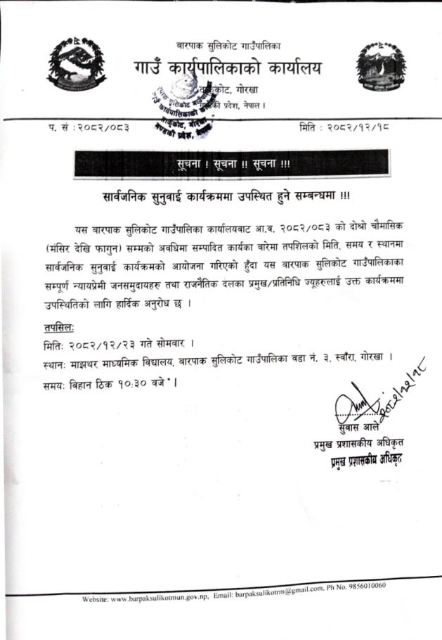 Home » सार्वजनिक सुनुवाई कार्यक्रममा उपस्थित हुने सम्बन्धमा ।।
