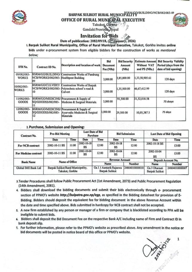 सार्वजनिक खरिद/बोलपत्र सूचना