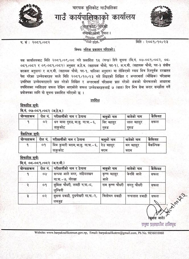 Home » अन्तिम नतिजा प्रकाशन गरिएको सम्बन्धी सूचना।
